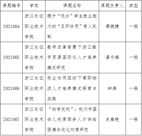 经学校推荐,省人力资源和社会保障厅专家评审,我校傅晓婕等四位老师获2021年浙江省人力资源和社会保障科学研究课题立项。根据浙江省人力资源和社会保障厅《关于公布2021年浙江省人力资源和社会保障科学研究课题立项名单的通知》,我校立项名单如下: