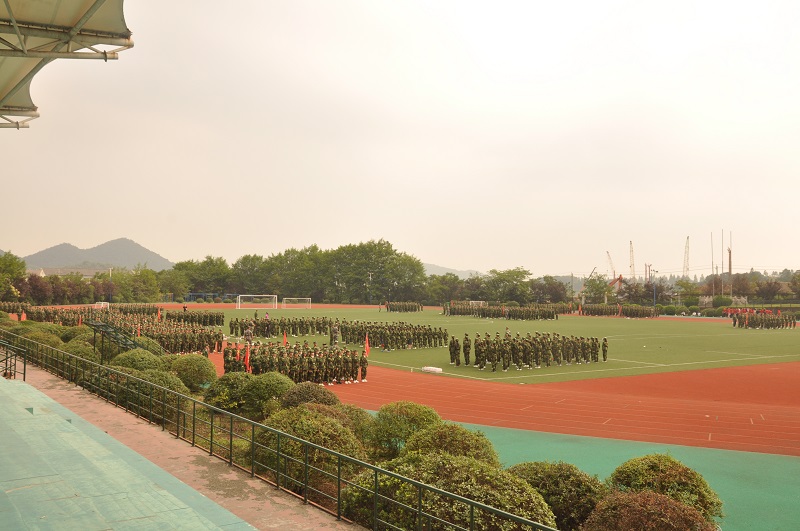 IMG_4890    2019年9月17日我校2019级新生军训拉开帷幕。秋风凉爽,桂花飘香,9月17日上午,2019级新生军训在校园内陆续进行。学生们在学院各领导、辅导员及教官的指导下积极投身训练之中。向关心、支持我们学校军训工作的部队领导表示衷心的感谢!  尽管赤日当空,但长征学子们的热情不减,精神抖擞地参与到训练当中。在军训中,高温酷暑给军训工作带来困难,有的学生病倒了,凭借着顽强的意志,稍有好转便坚持训练;有的学生带病仍在坚持训练。教官手把手教,学生认真的学,在军训队列中,方队整齐,精神饱满,步伐矫健、口令准确、声音嘹亮。