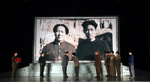 话剧《毛泽东和他的长子》以毛泽东的视角,穿插毛岸英妻子刘思齐的回忆,讲述了1946年毛岸英回国后,上“劳动大学”、参加土改、爱情婚姻、深入工厂、投身抗美援朝壮烈牺牲的人生经历。同时,话剧运用多媒体技术,打通场次的局限,实现了时空的自由转换,将出征别父、新婚丧夫、老年丧子交织在两个小时里,将理想主义、爱国主义、国际道义、人间正义集中于一个家庭,最终汇聚成一股感人肺腑的真情暖流,展现了浓厚的父爱主题。