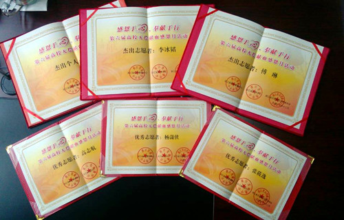在本次感恩月中我院献血人数共达235人次,献血总量共计58760毫升。李冰韬、傅琳等六位同学分别被评选为浙江省第六届高校感恩月活动杰出志愿者和优秀志愿者称号。(院团委供稿)