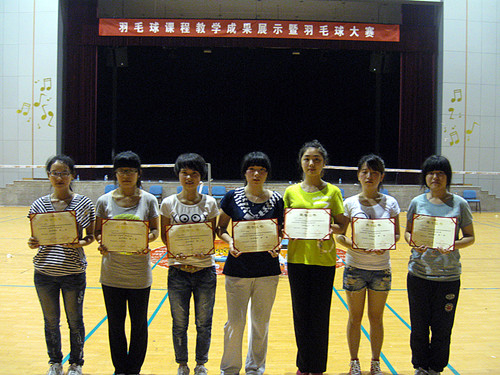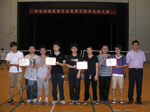 羽毛球课程自成为院级重点课程以来,课程组全体教师深受鼓舞,以提高教学质量为中心,先后进行了一系列教学改革:深化课程体系和教学内容改革,规范教学过程,统一教学大纲,组织相互听课和教学经验交流,进行教材、课件、网站等多种形式的教学资源建设等以提高教学质量。 羽毛球技能大赛作为课程教学成果展示的重要组成部分,比赛设男女双打、男女单打四项,分别取前八名,在前期大力宣传下,不仅选修羽毛球课程的同学积极报名,而且吸引了许多不同年级不同课程的羽毛球爱好者参与,先后有316人次报名参加比赛。