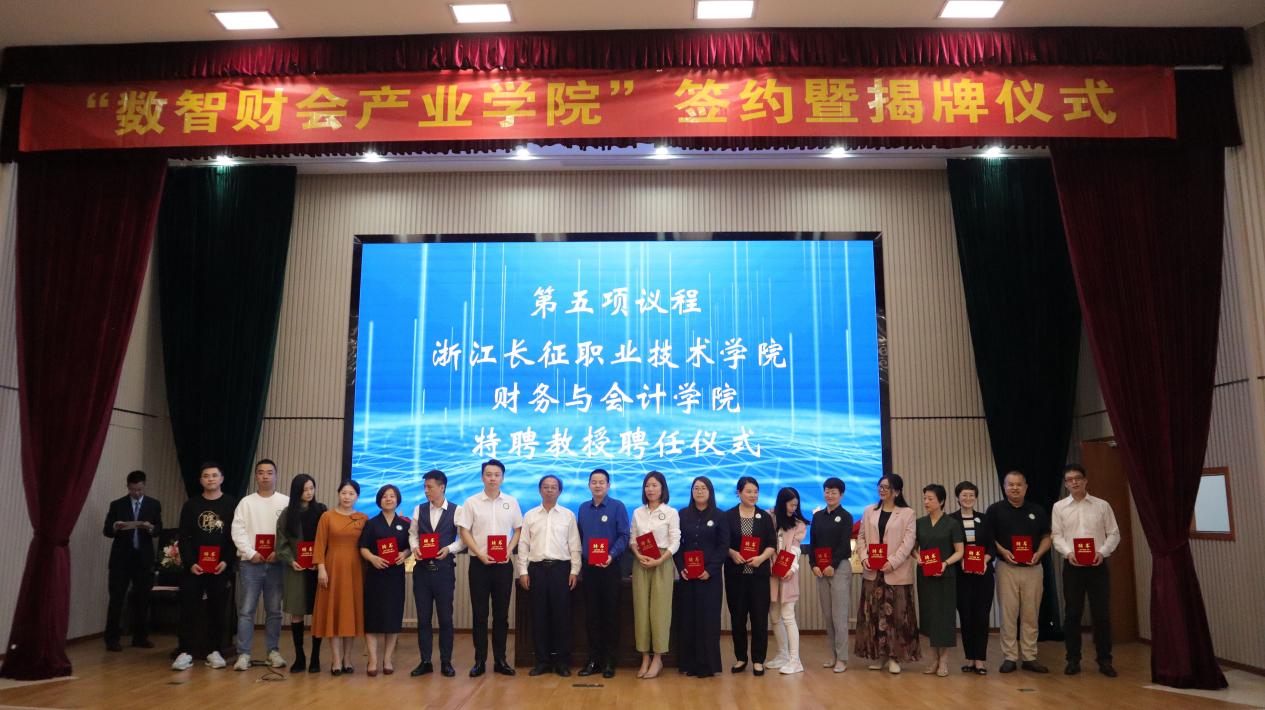 为进一步深化产教融合,创新人才培养模式,10月18日,学校联合杭州市代理记账行业协会在学校第二报告厅隆重举行“数智财会产业学院”签约暨揭牌仪式。学校党委书记、常务副校长王其军、副校长冯新红,杭州市代理记账行业协会会长周巾纭、执行会长洪静、党支部书记张彪出席仪式。杭州市代理记账行业协会讲师团全体专家,学校财务与会计学院师生代表参加仪式。