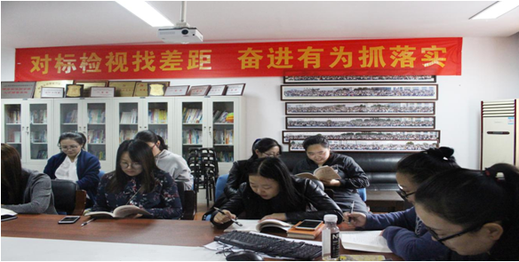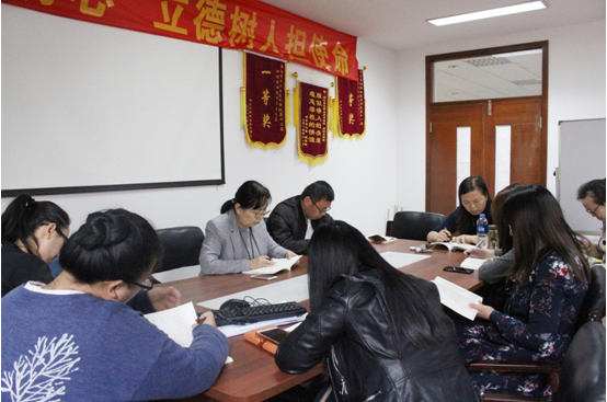 为强化全体党员教师政治素养,将学习教育贯穿始终,会计系党员教师于11月4日下午在实训楼南213开展了以“教育报国守初心,立德树人担使命;对标检视找差距,奋进有为抓落实”为主题的学习活动。在党总支书记杨军老师的带领下,全体党员教师共同学习了《习近平关于“不忘初心、牢记使命”论述摘编》,并诵读《把政治建设摆在首位,不断增强“四个意识”、坚定“四个自信”、做到“两个维护”》这一专题。