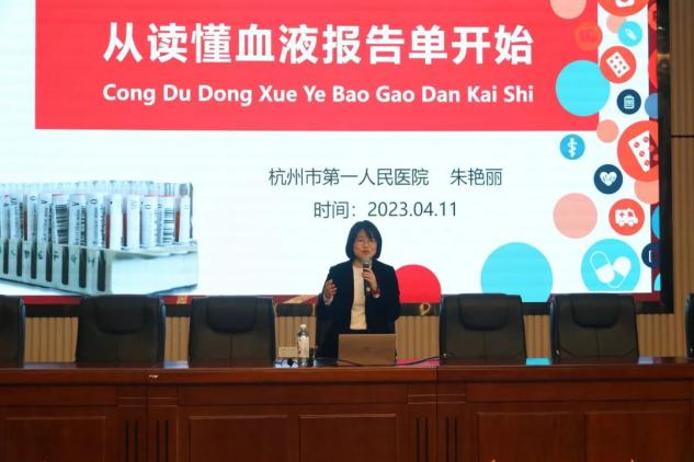 4月11日,学校邀请杭州市第一人民医院副主任护师朱艳丽老师在学校第二报告厅举办了“从读懂血液报告单开始”健康知识讲座。