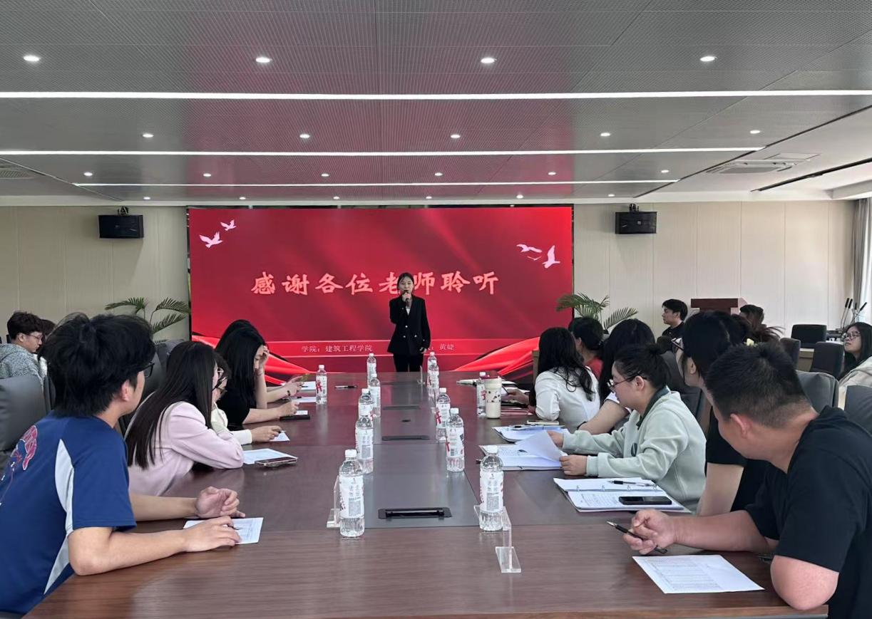 为深化党建引领,规范党员发展培养机制,4月14日,建筑工程学院学生党支部组织开展春季学期入党积极分子答辩会。学院党总支副书记陈敏洁、党办张红老师、全体专兼职辅导员及学生代表参加了本次会议,19位入党积极分子进行现场答辩。